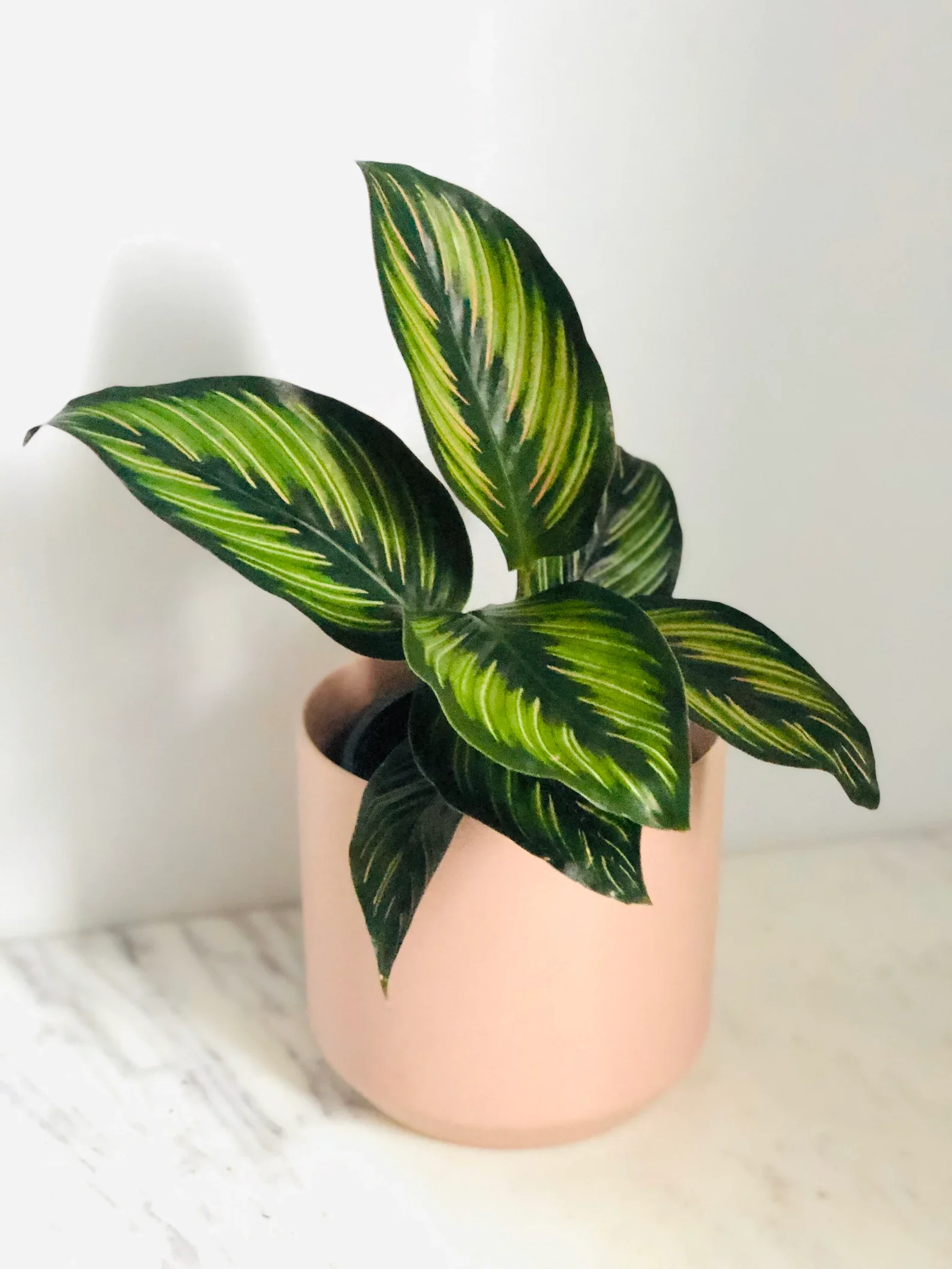 Calathea are the drama queens of houseplants as they can be extremely temperamental, and Calathea Beauty Star is no exception. They’re known for their pointed dark green leaves with light green, white, and pink markings, making them an eye-catching plant.
